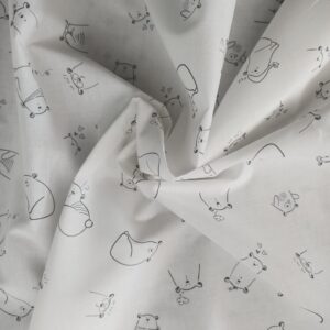 Tela in cotone stampa orsetti su fondo grigio perla