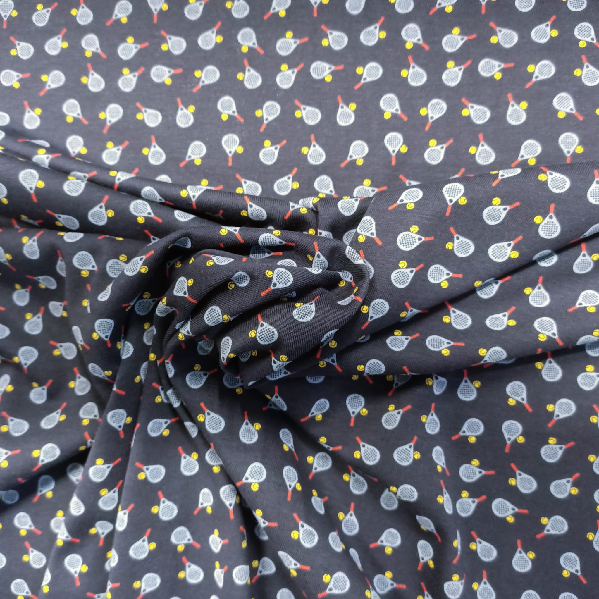Jersey con stampa racchette da tennis su fondo blu, retro blu